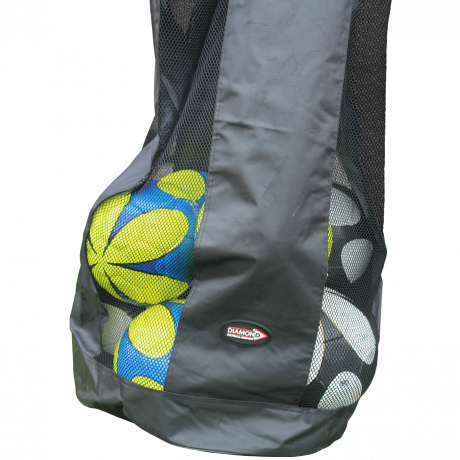 The jumbo ball carry sack from Diamond is made from 600 denier polyester, with mesh panels (to allow footballs to dry) and draw string opening and shoulder strap.